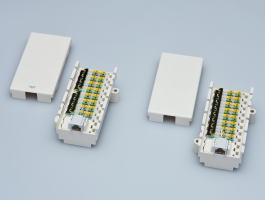 端子板です。 LAN配線等と配線ルートを共用する事により作業時間の短縮と配管などの大幅な コストダウンが可能です。 また作業性に定評のあるクランプ結線方式を採用しております。 |